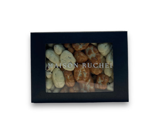 Nos noix de pécan proviennent des meilleures sources, sélectionnées avec soin pour leur taille et leur fraîcheur. Elles sont ensuite délicatement enrobées de différentes saveurs exquises qui éveillent vos papilles à chaque bouchée.